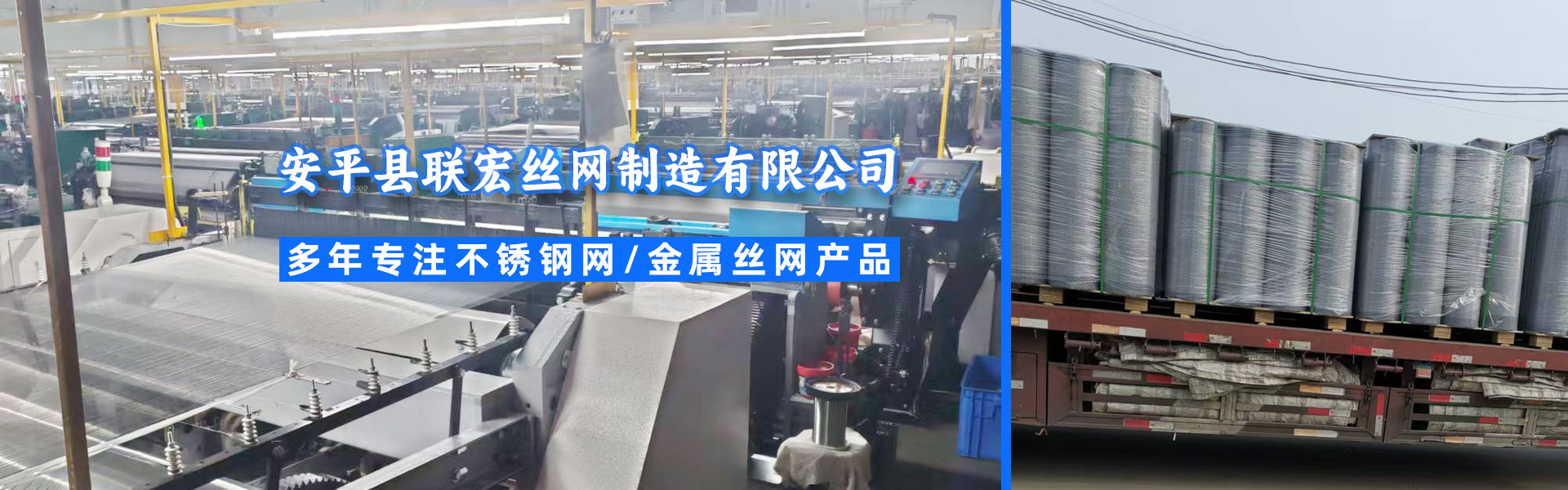 安平县联宏丝网制造有限公司位于丝网之乡——河北省安平县,公司经过多年的努力,现已发展成为一家集拉丝、织网、丝网深加工和商贸一体的大型现代化企业,拥有工程师,技术员工多人,各种生产检测设备。公司主要产品有不锈钢网、铜网、护栏网、黑丝布、电焊网、六角网、勾花网、窗纱、方眼网、轧花网、冲孔网、钢板网、石笼网、装饰网、烧烤网、网片、不锈钢丝、镀锌丝、黑铁丝等。产品被广泛应用于石油、化工、建筑、医药、航空、航天、公路、铁路、机械、电子、纺织、煤炭、养殖等许多领域。 我公司还可根据客户的要求,订做不同规格的金属丝网产品。本公司坚持技术创新、科学管理、诚信经营,注重引进先进的生产技术设备,从原材料采购、生产管理、产品检测等关键环节严格把关,确保了产品质量,赢得了客户的信赖。我们愿为外的客户提供丝网产品...